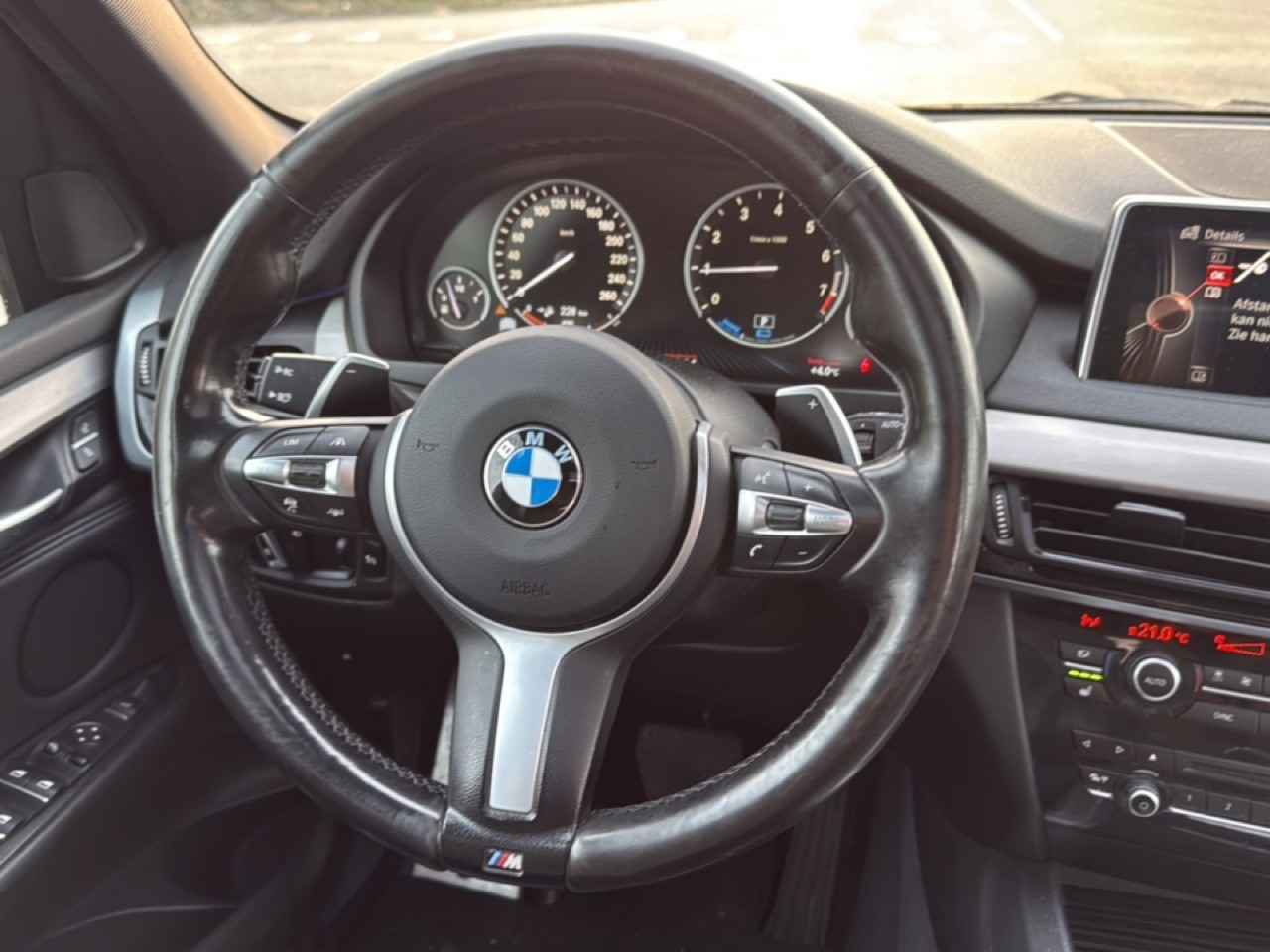De nieuwste veiligheidssystemen komen in deze BMW X5 samen. De actuele snelheidslimiet, een inhaalverbod en andere verkeersborden; de verkeersborddetectie ondersteunt u tijdens elke rit. Het Lane-keeping systeem garandeert dat u zich niet onverhoeds buiten de lijnen van de rijstrook begeeft. Bij duisternis herkent de nachtzichtassistent objecten voor de auto zoals mensen en dieren. Het systeem waarschuwt zodat u een aanrijding kunt voorkomen. De auto is ook uitgerust met dodehoekdetectie, hill hold functie, autonoom remsysteem en bandenspanningcontrolesysteem.