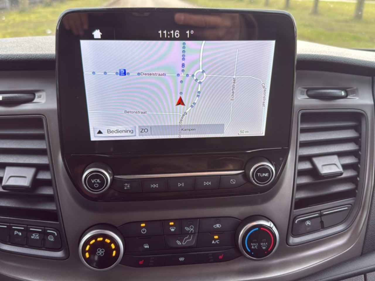 Zoals u mag verwachten van deze Ford Transit is hij uitgerust met een reeks aan actieve veiligheidssystemen. Dat de auto steeds meer taken van de bestuurder overneemt, merkt u bijvoorbeeld aan het systeem voor verkeersbord-detectie in deze Ford. Het Lane-keeping systeem zorgt voor een automatisch constante positie binnen de rijstrook. Afdwalen is uitgesloten.