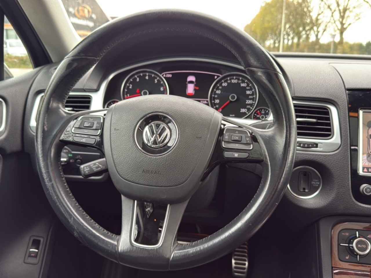 Wanneer u achter het stuur van deze Volkswagen Touareg kruipt, ervaart u het ongeëvenaarde Duitse vakmanschap die hem tot een klasse apart maakt. Zoals het een echte Volkswagen betaamt, verkeert deze Touareg in uitstekende conditie. Met zijn benzinemotor en automatische transmissie is deze Volkswagen een prettige auto om te rijden. Zonder overdrijven een uitvoering met luxe en gemak: het elektrisch bediende glazen panorama dak, de elektrisch bedienbare achterklep en een mooi lederen interieur. Winterse omstandigheden? Geniet dan van het comfort van de stoelverwarming! Niet alleen u, maar ook uw passagiers zitten goed, dankzij de verwarmde achterbank. Met de krachtige xenonverlichting heeft u optimaal zicht in het donker. Alleen bij rijden is er brandstofverbruik dankzij het start-stopsysteem. Stilstaan kost niks. In deze Volkswagen profiteert u onder andere ook van: 19 inch lichtmetalen velgen, geluidsisolerende ramen en snelheidsafhankelijke stuurbekrachtiging.